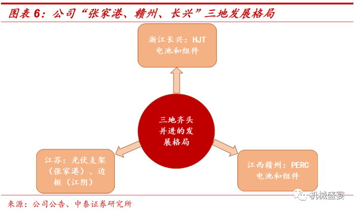 ②业务的地区布局方面,公司着力打造浙江长兴、江西赣州高效光伏电池及组件生产基地,形成了“张家港、赣州、长兴”三地齐头并进的发展格局,并以HJT电池组件项目为核心,提前布局下一轮光伏技术迭代的主阵地。同时公司营销中心的提前布局将为三地产能“量”与“质”的全面释放,持续做好资源积累和市场反馈。