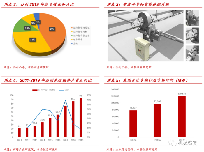 2) 光伏支架:公司是国内最早从事光伏支架制造的公司,产品持续面向海内外优质客户,形成包含并符合市场与客户需求的地面支架、屋顶支架、智能跟踪系统、农业大棚、螺旋桩等全系列、智能化支架系统解决方案,一直稳居全球光伏安装支架行业的前列。2020年初始,公司基于固定支架领域内雄厚的基础,已经与越南清洁能源企业第一大投资商中南集团就其位于越南Ninh Thuna省的616MW太阳能发电项目达成合作,该项目为目前为止越南最大单体项目。