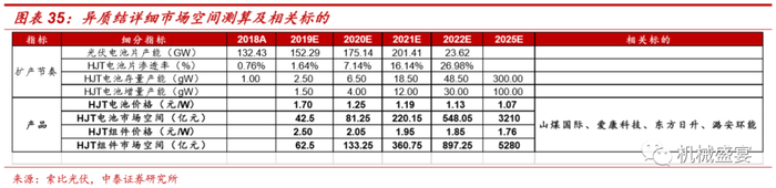 ③异质结市场空间方面,假设2025年异质结产业发展成熟,存量异质结电池产能为300GW,增量产能为100GW,经测算异质结电池市场空间超3000亿元,组件市场空间超5000亿元。