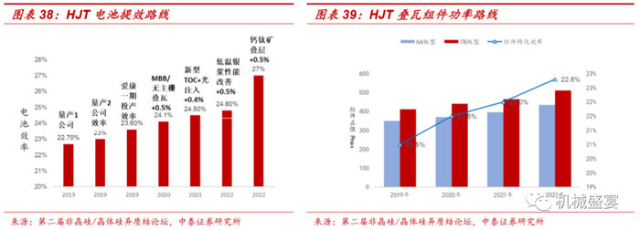 ②异质结电池技术: 2022年HJT电池效率有望提升至24.8%,78版型HJT叠瓦组件功率有望提升至22.80%。