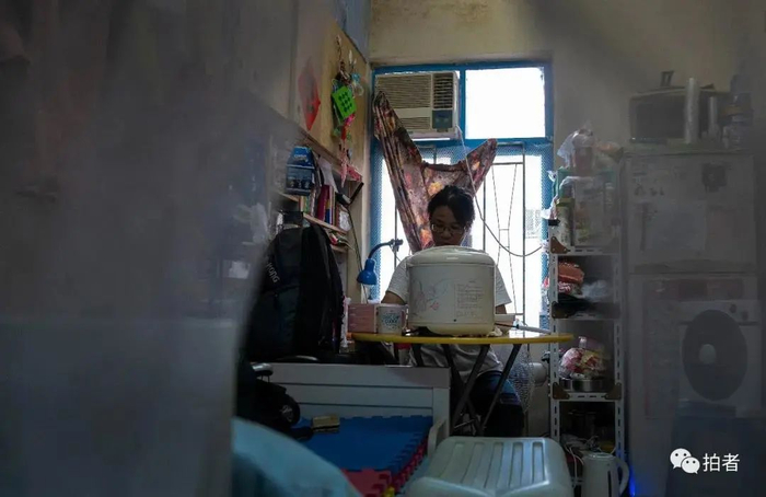 ▲黄凤租住在深水埗一处唐楼的劏房里。唐楼是香港上世纪中后期兴建的中西结合式样的建筑,经过多年风吹日晒和反复私搭改建,现在大多已经破烂不堪。“劏”有分割之意,就是将唐楼里的一户分割成多个不足10平米的小隔间。