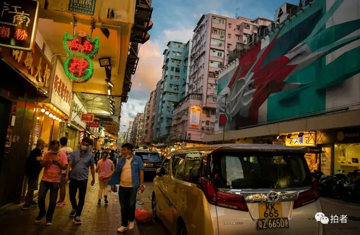 ▲7月7日,人来人往的深水埗街头。深水埗位于香港九龙半岛的西北部,整条街道的建筑保留着上世纪60年代的样貌,从上世纪中叶至今,这里不断地涌入各类人群。如今,这里餐馆云集,电子商城遍布大街小巷,区内业主经营着唐楼、劏房、笼屋等各式物业。这里是香港人员最复杂,最具烟火气的地方。