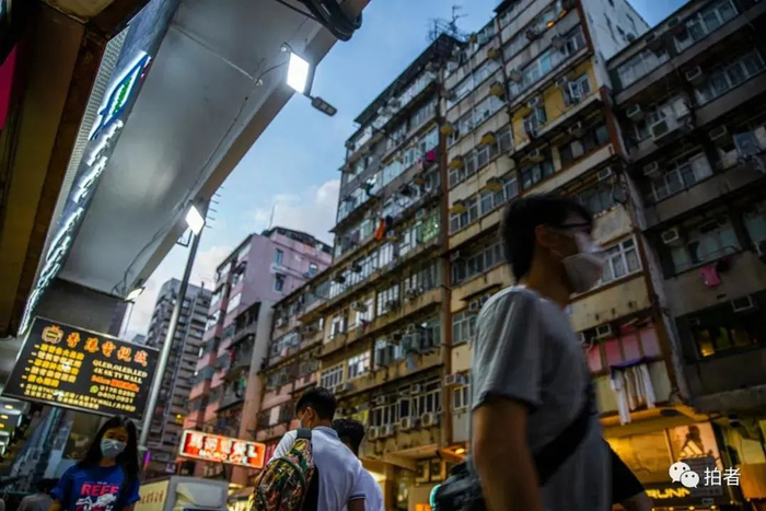 傍晚时分,深水埗街道两旁高丛的旧式楼宇遮挡了一天中最后的阳光,商铺酒楼提前亮起了闪烁的霓虹灯,在人流如织的骑楼和蓝色的天空之间,拥挤着数不清的劏(tāng)房。