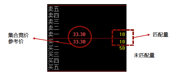集合竞价期间,如果投资者的订单量充足,可以形成集合竞价参考价,揭示内容也与沪深市场一致,会在买一、卖一揭示参考价,同时会带有匹配量以及未匹配量。无集合竞价参考价时,揭示最优1档申报价和数量。