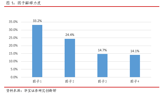 PCA的目的是降低维度,解释力度极低的因子可以剔除。选择因子既可以限定因子个数,也可以限定所选因子的合计解释能力,并根据特征矩阵,来确定因子与资产的相互表达关系。
