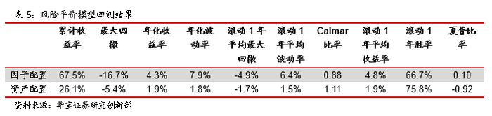 综合两个组合的资产配置权重和回测结果,均说明了虽然同样采用了风险平价模型,但是因子配置和资产配置的风险等级差别较大,回测结果可比性不强。