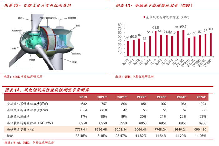 直驱风机渗透率逐步提升,风电领域钕铁硼需求量稳定增长