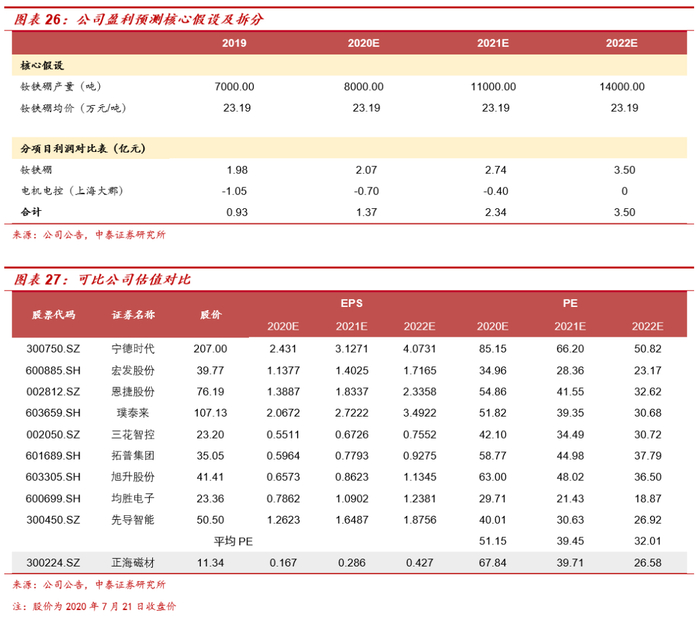1)价格假设,预估2020-2022年公司钕铁硼不含税售价均为23.2万元/吨;