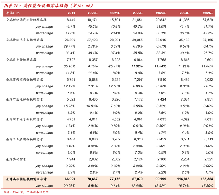 新能源汽车2025年高性能钕铁硼需求量达到5.75万吨,CAGR38%