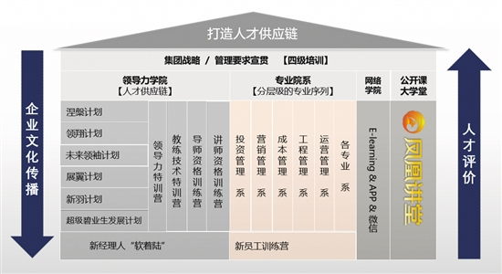 碧桂园用十年的时间打造了一个有自身特色、受业界关注的人才培养体系。在这个体系里面不仅有三大战略型人才品牌项目——领导力发展项目、未来领袖、碧业生(2017年后升级为超级“碧业生”),还有系统的专业条线人才培养计划、完善的讲师和课程体系,就连e-learning平台都有超过7000门自主开发的在线学习课程。