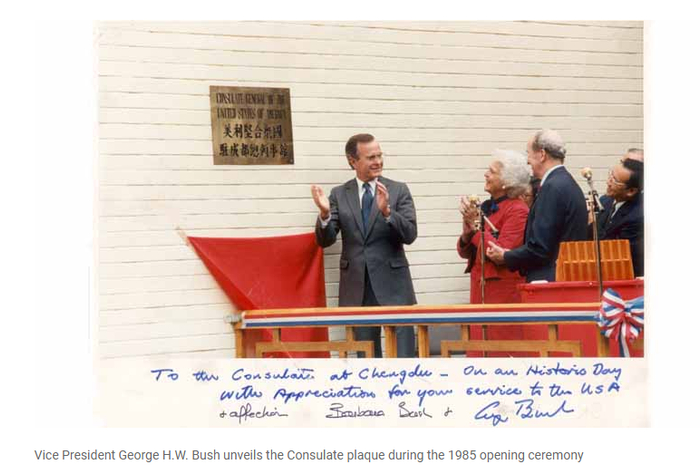 证券时报·e公司记者了解到,美国驻成都总领事馆于1985年建馆,最先的办公地点位于在锦江宾馆西一楼。领事馆刚开始时仅有六名美国官员和约二十九名当地雇员,当时的领事馆仅有行政办公室(一位总领事和一位行政助手),一个处理政治、经济和商业事务的小办公室,一个领事处,一个后勤处和一个新闻文化办公室。