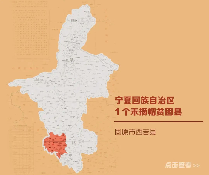 这里或人多资源少。宁夏最后一个未摘帽贫困县西吉县,是宁夏人口第一大县,2014年建档立卡贫困人口占西海固地区9个贫困县区所有贫困人口的五分之一以上,贫困程度在“不适宜人类生存”的西海固中仍居首。