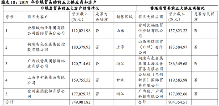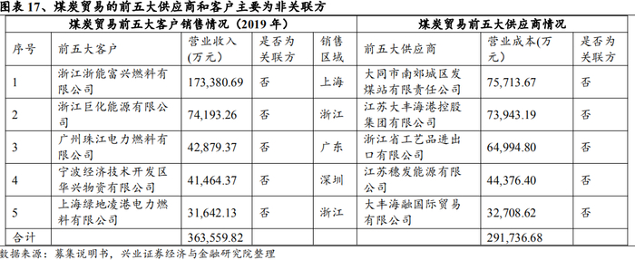 贸易业务下游客户以非关联方为主,对集团资金的占用较大。从客户来看,公司煤炭贸易的前五大客户皆为非关联方,分别是国家能源集团、华能集团、大唐集团和广州珠江电力燃料公司,4家客户贸易量合计占比超过40%。从供应商来看,2019年50%的采购量来自于集团资产煤矿,且比重较上年有所减少。从贸易结算情况来看,公司针对战略用户和大用户采用先行供货,45-60天到期结算方式,对集团资金造成较大占用。