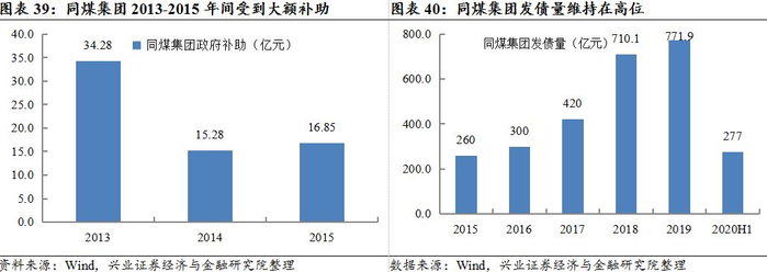 来自金融机构的支持。截至2020年Q1,同煤集团拥有银行授信1,946.15亿元,未使用信贷额699.37亿元,无法覆盖所有的短期负债,偿还短债理论上需要其他融资工具配合。从发债来看,同煤集团发债规模逐年提升,成为公司最主要的融资手段。未来,金融机构的支持程度是影响同煤集团信用资质重要的变量。