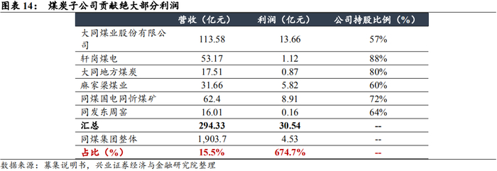 c) 对盈利弱的子公司持股比例较高,而对盈利较好的子公司持股比例较低,导致少数股东瓜分了绝大多数利润,归母净利润长期为负。对于几家盈利能力较高的煤炭子公司,同煤集团持股比例并不高,使得高盈利子公司的少数股东瓜分了集团很大一部分的利润,归母净利润多年为负。