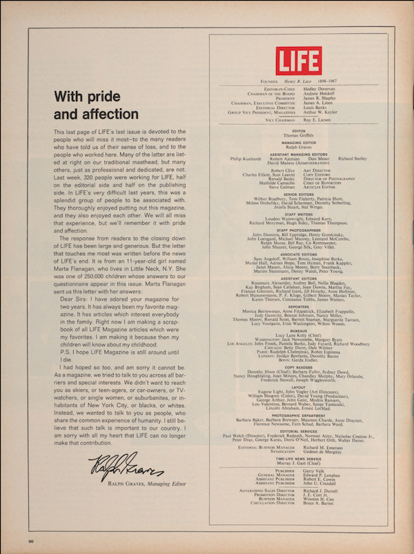 1972年12月29日,最后一期周刊形式的《生活》杂志最后一页。