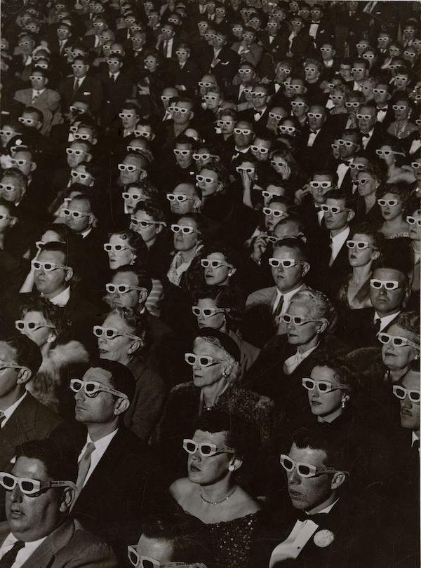 埃尔曼拍摄的戴着3-D眼镜紧盯电影屏幕的观众