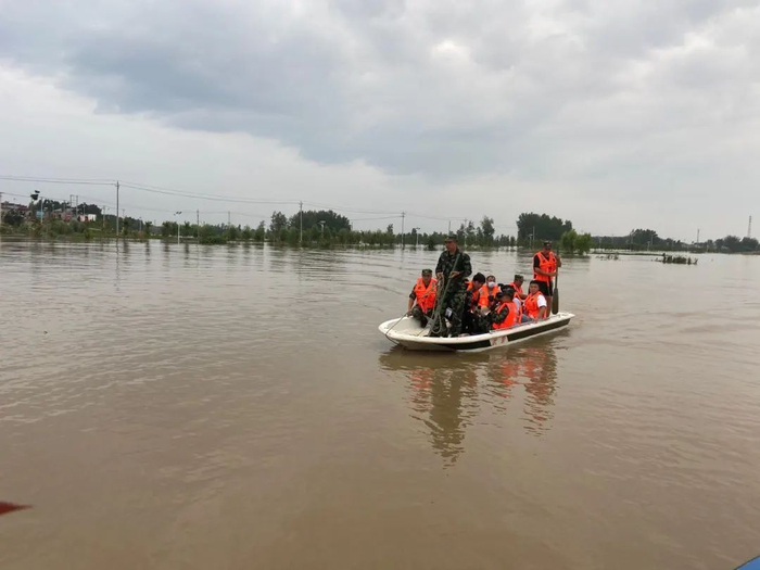 记者在蓄洪区内的乡镇看到,为了保障湖心庄台上村民的生活和就医需求,解放军、武警官兵、民兵、消防救援等都在合适地点设置“临时码头”,一趟趟转运人员和物资。