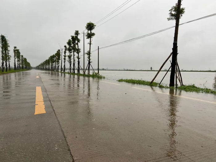 蓄洪区内,一条道路已经与洪水齐平,即将被淹。
