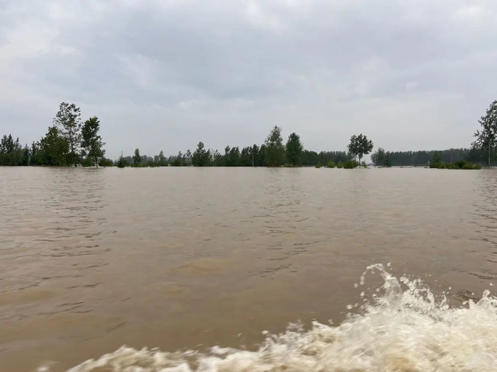 蓄洪区内,一片汪洋,洪水淹没了通往外界的道路。