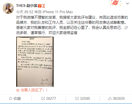 杨铭坦诚,公众对艺人的舆论监管越发严格,也对艺人运营提出了新的挑战。近日,旗下艺人赵小棠因为在自己小号不当发言引发的一场不小的舆论风波。