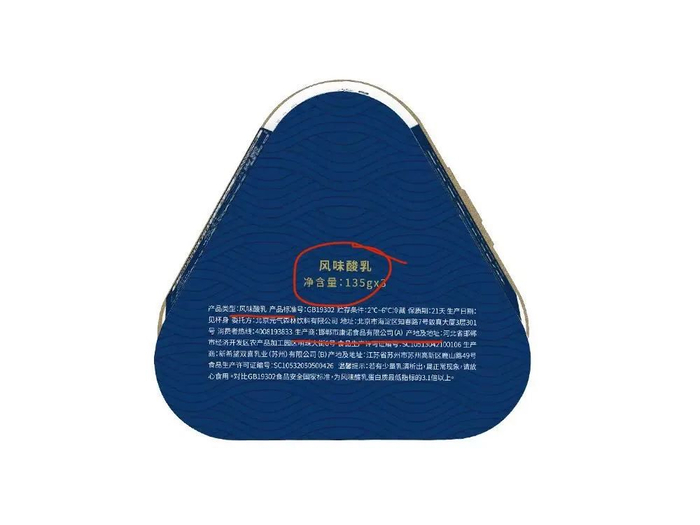 这里普及一下相关概念,风味酸乳和风味发酵乳,与酸乳和发酵乳不同,不需要纯生牛乳发酵,只要满足奶/奶粉含量超过80%、蛋白质含量不少于2.3%的条件即可。