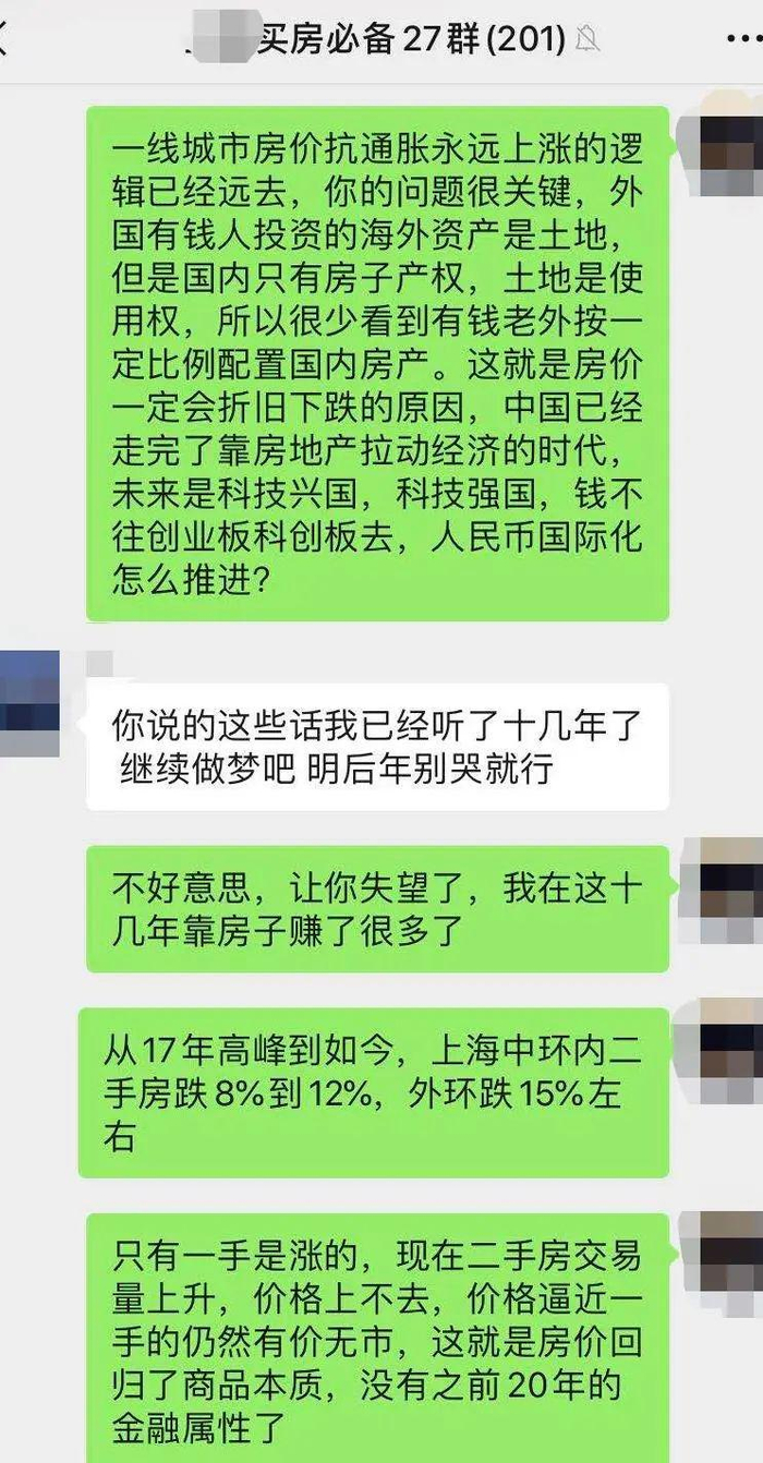 “股票不是一般人能玩儿的,还是房子更加保值。”群内强烈反对“卖房炒股”的莫聪,告诉凤凰网财经记者“楼市长期走牛,股市牛短熊长”是不变的真理。