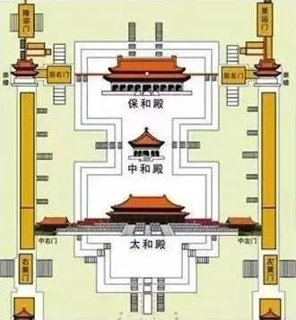 皇宫依据着宫、殿的性质和功能设置,从大布局来说是所谓的“前朝后寝” 的传统,以单体结构看就是“宫殿”的组合。前朝进行政务的主要建筑都称作“殿”,后寝基本上都是“宫”。