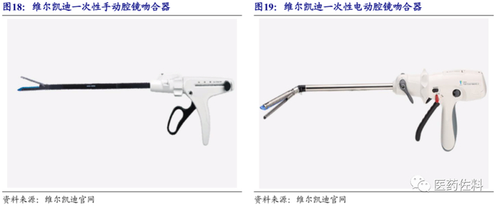 全资子公司维尔凯迪2014年取得《医疗器械生产企业许可证》,开始进入外科手术器械领域,专业化生产普胸外科、胃肠外科、泌尿肛肠外科等多系列的一次性使用吻合器,先后通过ISO13485医疗器械质量体系认证和欧盟的CE认证。截至2019年底,公司已相继推出直线型切割吻合器、直线型吻合器、管型吻合器、肛肠吻合器、腔镜切割吻合器、腹腔镜用穿刺器、腔镜用电动切割吻合器、弧形切割吻合器、脐带剪断器等产品,其中腔镜用电动切割吻合器是公司核心主力品种。
