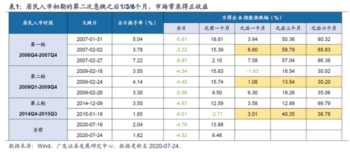●居民入市前期多急跌得到验证,但不并影响牛市进程。