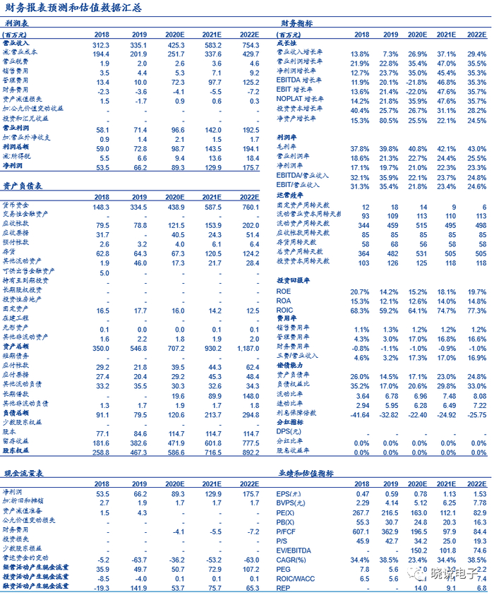 智能家电类芯片:智能家电产品随着低功耗、高集成度AC-DC产品占比提升以及募投项目释放,预计市场份额将进一步提升,预计2020-2022年营收增长分别为30%、40%、30%。