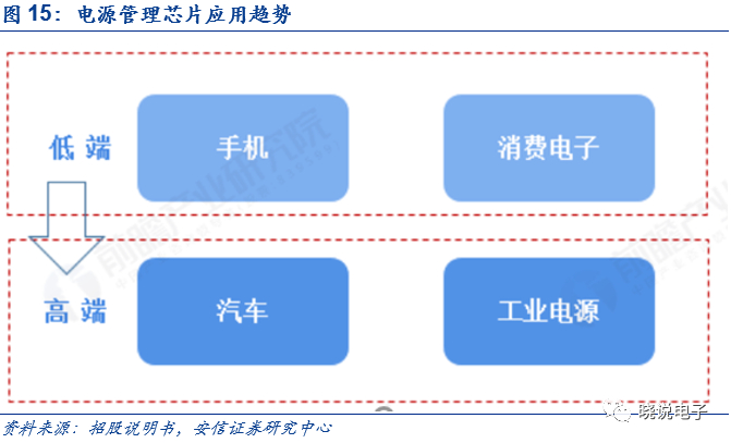 目前整个电源管理芯片设计产业呈现出由美国、欧洲、日本向中国转移的趋势,中国的电源管理芯片设计产业正处于上升期。由于终端消费品的制造中心向亚太和中国聚集,台湾和大陆企业的竞争导致无法维持原来的超高毛利,欧美大型芯片设计企业有逐步淡出民用消费类市场的趋势,转向汽车级、工业级、军品级乃至宇航级等其他性能要求更高的市场。在产业转移的过程中,国内企业设计开发的电源管理芯片产品在多个应用市场领域,尤其是中小功率端的消费电子市场已经逐渐取代国外竞争对手的份额(如公司家电类电源管理芯片已经覆盖国内主要品牌客户),进口替代效应明显增强,未来国内厂商有望切入国际市场。