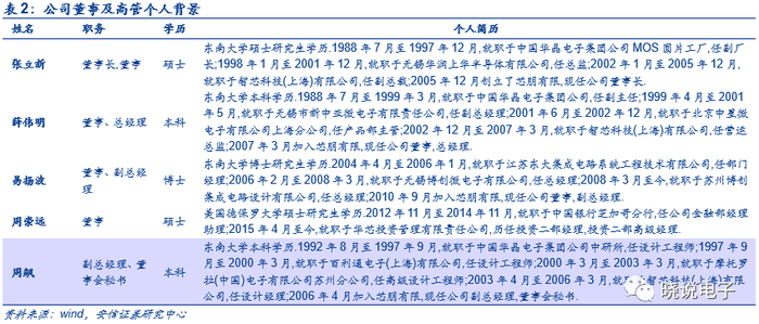 公司董事及高管均具备一定研究背景,实控人张立新先生为东南大学硕士研究生学历,曾任职中国华晶电子集团公司MOS圆片工厂副厂长、锡华润上华半导体有限公司总监、智芯科技副总裁、05年创立芯朋有限,为现任公司董事长。