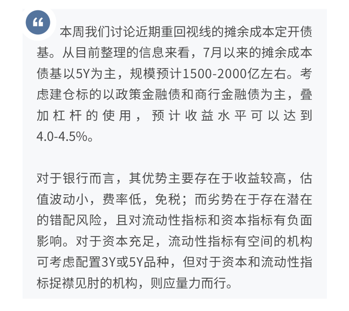 【今日推荐】银行资产配置观察第20期:摊余成本定开基金投资策略