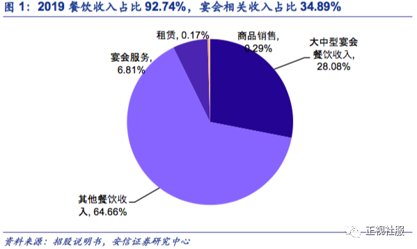 2019年餐饮收入占比达92.74%,其中宴会餐饮及服务为公司重要收入来源之一。公司主营业务收入主要为餐饮业务收入,2019年餐饮收入占比达92.74%,其中宴会餐饮收入占比28.08%。其他业务收入主要为宴会服务收入,宴会服务收入主要系公司向宴会消费客户提供增值服务取得的收入,包括辅助性宴会服务和一站式宴会服务。自2014年底起,公司为客户提供一站式宴会服务并逐步得到客户认可,宴会服务收入相应增长,2019年宴会相关收入占比达34.89%。