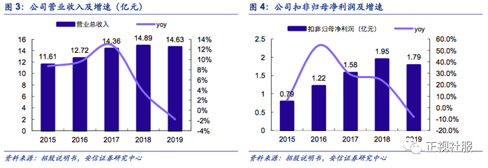 ■A股老字号餐饮连锁标的,上市助力门店扩张。1)“同庆楼”品牌创立于二十世纪初,为中华老字号餐饮品牌,经营多种菜系,定位大众聚餐+宴会服务,客单价110-130元。公司自创立以来均为直营模式,目前共拥有57家门店,分布在安徽、江苏、北京,主要集中于合肥(27家)、无锡(10家)。2)公司实际控制人沈基水及其配偶吕月珍共持股61.69%,为民营企业,股权较为集中。3)公司2019年实现营收14.6亿元/-1.7%(2014-19年CAGR 6.5%),2018-19年整体营收增速有所放缓,或系近年公司战略调整期使得2017年后陆续关闭快餐门店所致。公司2019年实现归母净利润1.98亿元(2014-19年CAGR 22.4%),或系新店爬坡成熟+费用控制+政府补助所致。考虑到公司2019年新开店6家,且新店爬坡期需要1-2年,新开门店业绩或有望于2020-2021年释放。