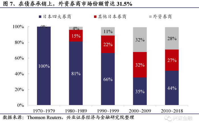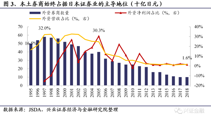 一、日本证券业开放难改竞争格局,本土券商始终占主导