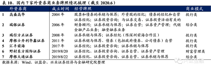 销售交易业务:短期内受牌照限制或掣肘其业务开展,但长期来看随着国内金融市场工具完善、QFII投资额度与投资范围放开,外资券商的产品创设及投资交易优势将逐步显现。