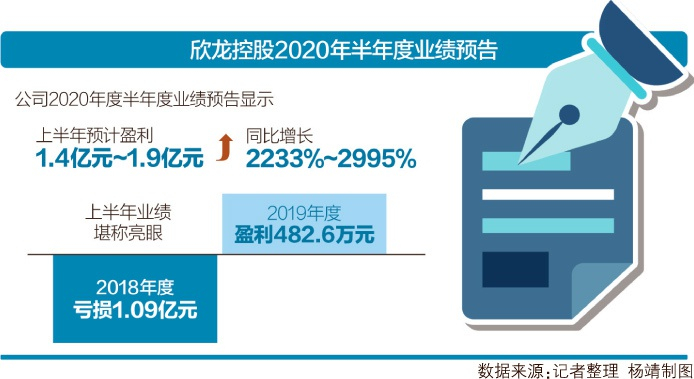 欣龙控股主营非织造材料的研发、生产和销售,产品主要包括各种水刺非织造布、熔纺非织造布等。今年一季度,公司实现净利润 5835.37 万元,同比增长1545.49%。公司2020年度半年度业绩预告显示,其上半年预计盈利1.4亿~1.9亿元,同比增长2232.85% ~2994.58%。相较于2018年度亏损1.09亿元,2019年度盈利482.6万元,欣龙控股今年上半年的业绩堪称亮眼。