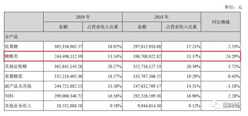 目前来看,保龄宝和三元生物等是国内赤藓糖醇主要生产企业,三元生物8成以上营收都来自赤藓糖醇,2019年,赤藓糖醇所属的糖醇类营收只占保龄宝总营收13.54%,但赤藓糖醇却是公司的主要增长动力。