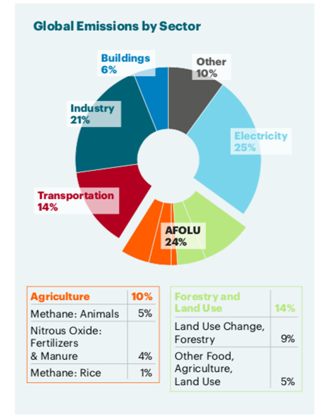 报告的数据显示,人类社会饮食模式所产生的二氧化碳排放约占全球二氧化碳排放总量的24%,相当于电力生产活动二氧化碳的排放量。