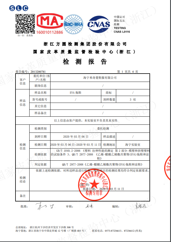 质量通过有关部门检测的拖鞋