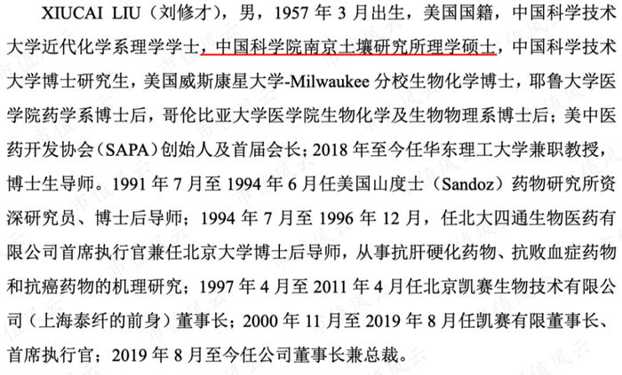 核心技术人员之一XIUCAI LIU(刘修才)是实际控制人,目前担任公司董事长兼总裁,属于技术背景出身,中科大毕业,在美国取得博士学位。
