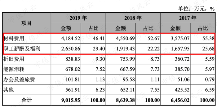 2017年-2019年研发上投入6456万、8639万、9015万,占营业收入比例为4.74%、4.92%、4.71%,所有研发投入都费用化。