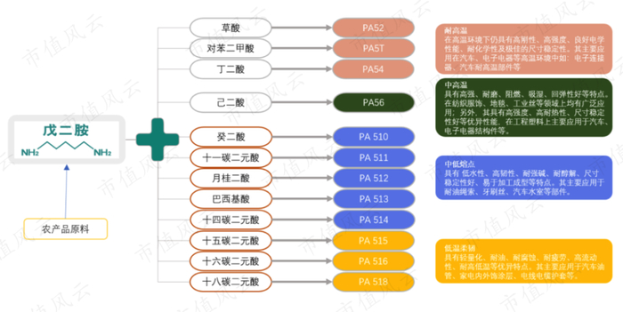 戊二胺和不同的长链二元酸合成不同的聚酰胺,性质和功能也不同。