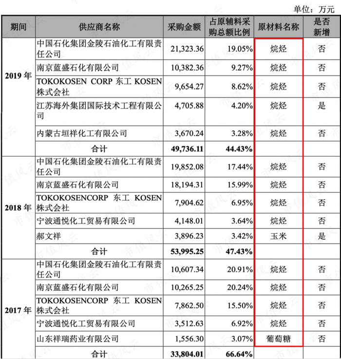前五名供应商采购内容也是以烷烃和玉米为主。