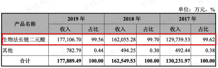 目前公司99%以上的收入都是长链二元酸。