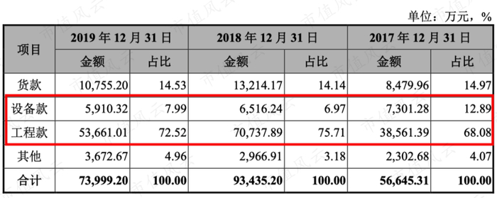 应付票据都是商业承兑汇票,而应付账款也有应付的货款,但不多,2019年只有1.07亿,应付账款主要是设备工程款。