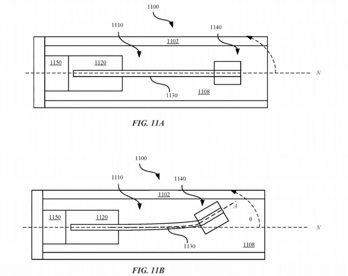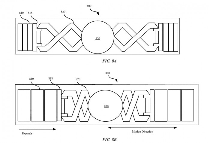 专利文件内的图片还表明,可能会有一些带有剪刀式机制的元件,可以在机身内膨胀和收缩。通过握住质量并改变其膨胀或收缩,这些元件可以移动铅笔的重量,使其在一端或另一端稍重。这种重量在两端之间的移动,用户会感觉到。铅笔重量的变化也不必快速发生,因为用户将能够感受到快速扩张和收缩的嗡嗡声,以及通过较慢的运动进行更渐进的变化。