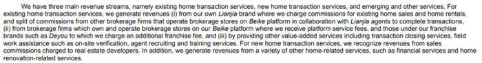 贝壳做的是平台生意,而其获取收入的主要来源是:存量房交易、新房交易以及其他新兴业务。